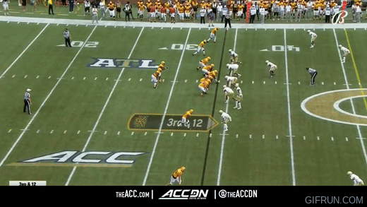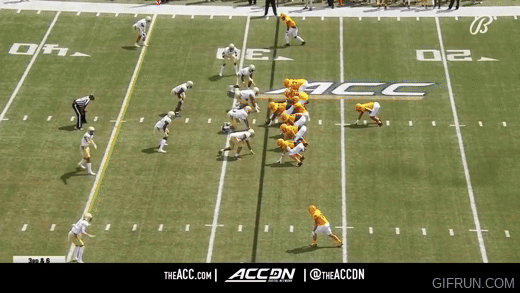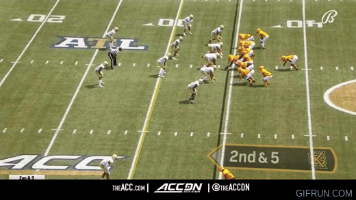 The pre-snap motion familiar to Navy will of course exist and be used on a majority of snaps. Here against the Yellow Jackets, we see Shepherd hit the motion man in a cleverly designed play that takes advantage of hesitating linebackers.