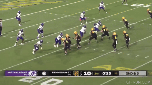 We will see how Navy’s recruiting evolves in the coming years although to me Kennesaw State’s passing game was built with more athletic and long receivers capable of getting open with speed and not just deception. Here, a wingback shows good acceleration to find a seam and complete a big chunk play through the air.