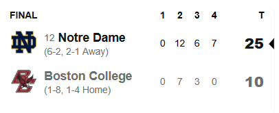 On a breezy afternoon in Chestnut Hill it was supposed to be an easy victory over a slumping Boston College program with little to play for in November. Notre Dame got a heavy dose of crazy college football in a sleepy, weird, and disappointing effort that was fortunately enough to hold off the Eagles 25-10. With a Disney and YouTube TV dispute causing many to scramble to watch the game, if you were unable to catch this you didn’t miss much!