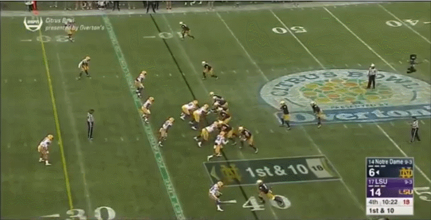 Etling finished 7 of 16 (1 sack included) on 3rd or 4th down which is a pretty solid number considering he got 79 yards on the day from 3 of those throws. However, 2 of those throws came on LSU’s missed field goal drive so they didn’t hurt Notre Dame in the end.