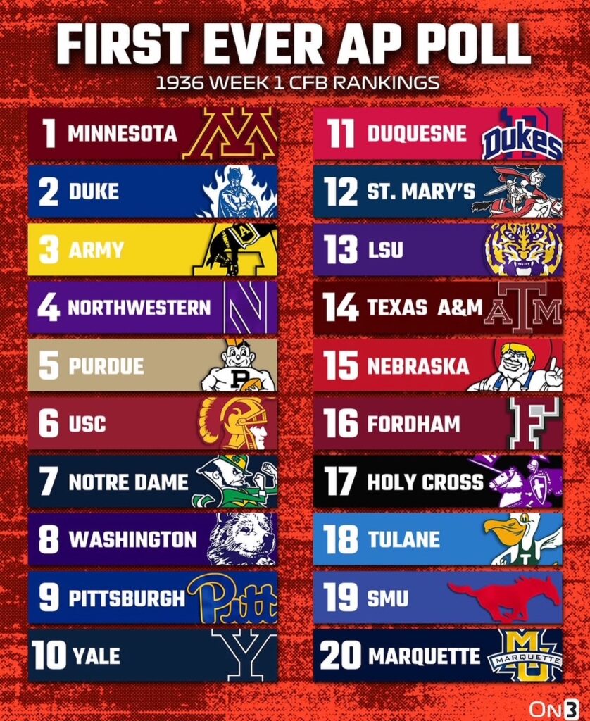 5) This week, On3 shared the first ever AP Poll from 1936. Were the polls a hot mess back then or were they better?