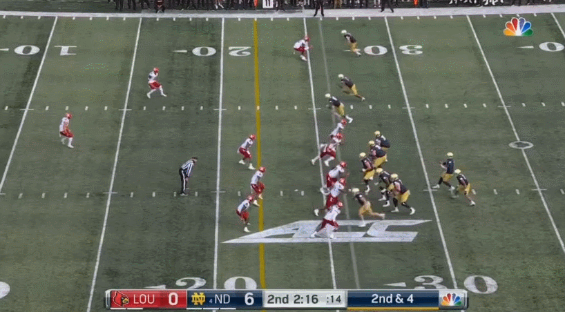 Similar to last week, the defense blitzed quite often and couldn’t get home ending with 0 sacks. More disappointing, Louisville didn’t seem too bothered by Notre Dame sending bodies toward their quarterback. This will probably be a major problem against Clemson.