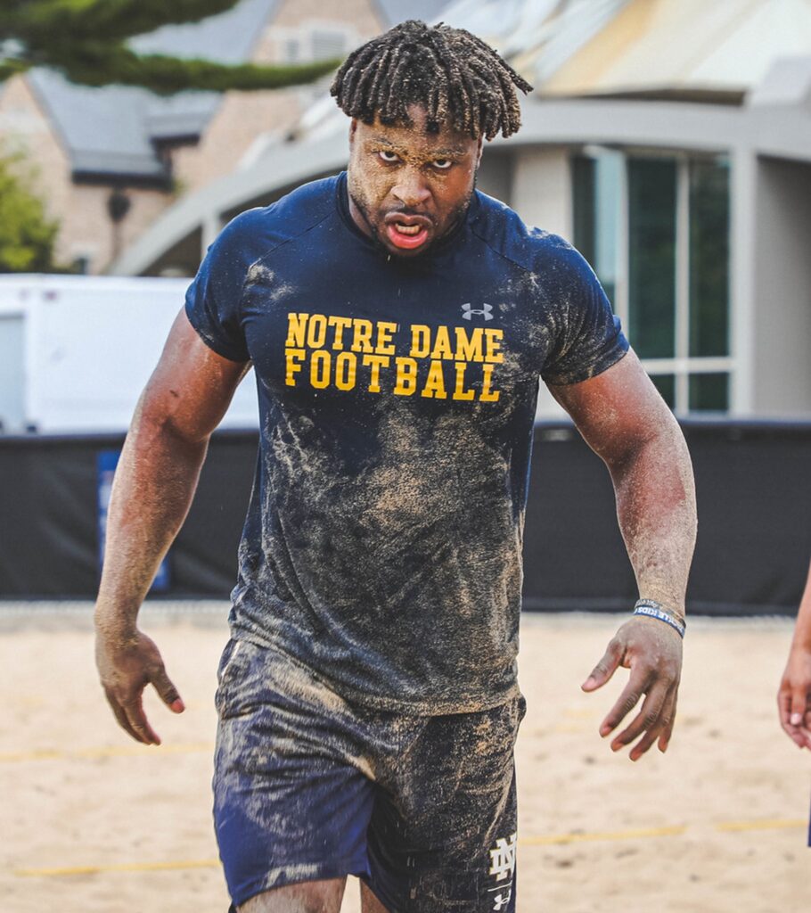 The former Michigan State commit flipped to Notre Dame back on December 18th and was a super late addition to the class in the Early Signing Day era we live in now. He walks into a situation where he’ll be battling for 4th string reps with classmate Logan Diggs so not the most exciting situation ever. However, this guy is built.