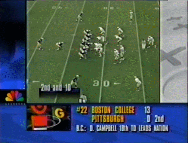 Even though his numbers were never impressive they belie his importance. As a folk hero to this day many remember his calmness and ability to run the offense. During the 1st half against FSU he was on the nuggets and played one of his cleanest games of the season. He ran the option perfectly (including a couple early successful runs) and although his 6 of 11 for 64 yards first half passing doesn’t seem like much to modern sensibilities, he opened the game crisply and was 2 really awful drops from starting 8 of 9 for close to 100 yards. He also converted a pair of 3rd and long situations with his arm, too.