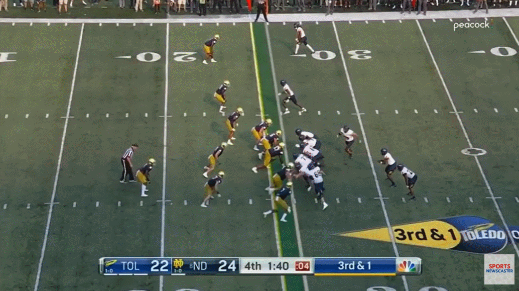 Notre Dame almost lost to Toledo last year but Finn played sparingly that day before eventually taking over the starting job later in the season while throwing 18 touchdowns to just 2 interceptions with 505 rushing yards to boot. If you recall, He did come in and scamper for the 26-yard go-ahead touchdown that nearly beat the Irish.