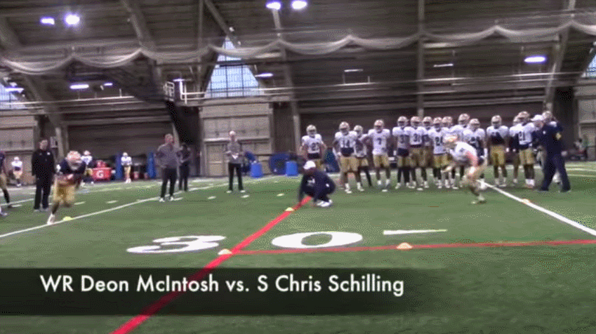 So far this spring things have been pretty quiet for McIntosh. He’s spent the majority of his time running with the 3rd team at slot where there just isn’t much hope for playing time or a ton of practice reps. However, in one of the recent practice highlight videos he did do this: