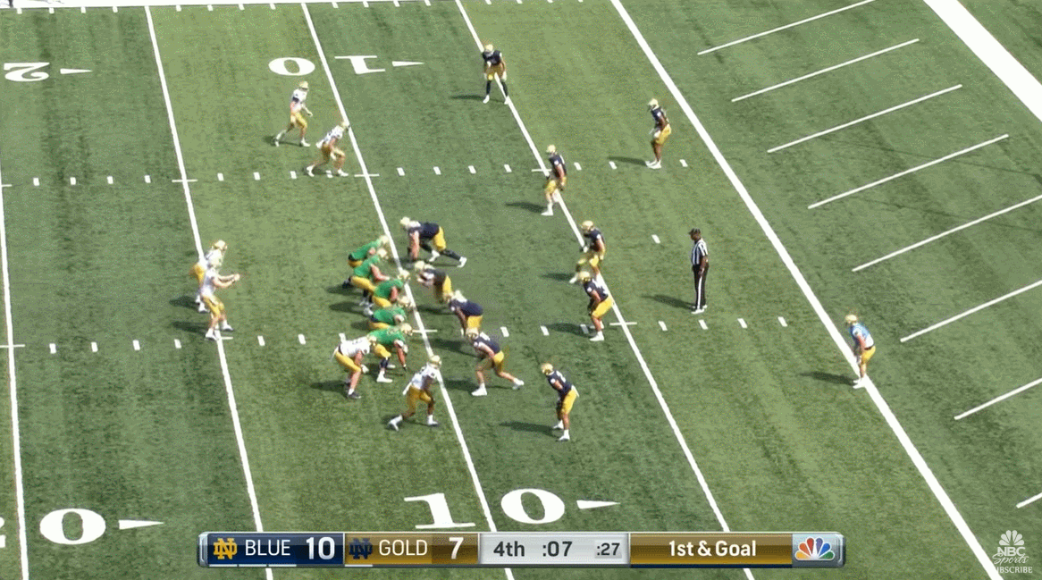 Then during the spring game, he looked really sharp going 11 of 13 for 180 yards with 1 touchdown through the air and finished things off with this walk-off rushing touchdown to win it for the gold team: