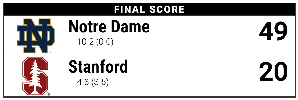 Here’s the game review of the 49-20 win over the Cardinal: