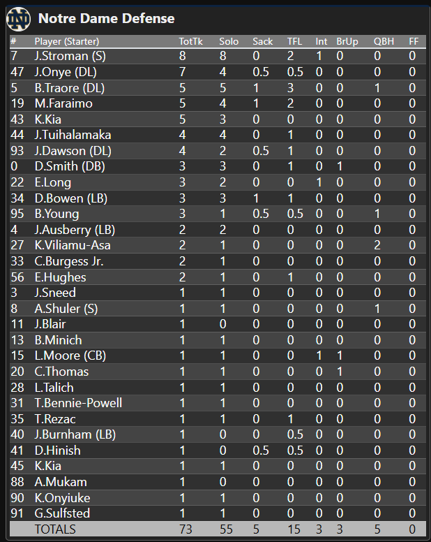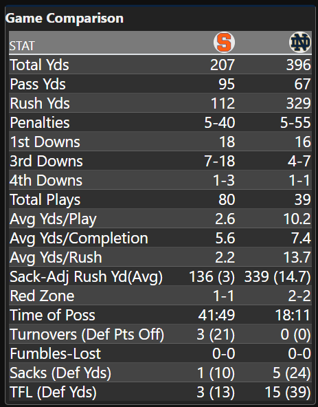 Plus, the Irish only ran 39 offensive plays! What in the world was even this game??
