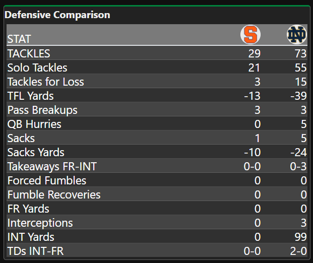 Another crazy stat (there are so many from this game) includes just 4 conversions for Notre Dame.