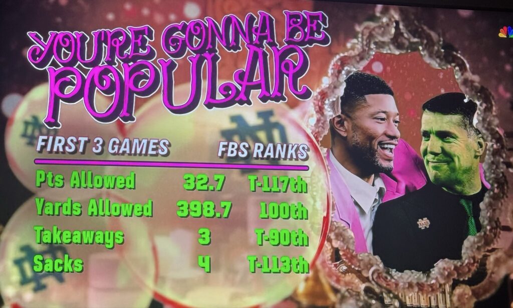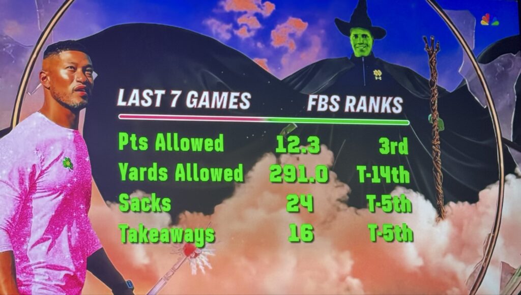 In case you missed it, NBC decided to go with a Wicked themed graphics package to show off Notre Dame’s defensive improvement this year under Chris Ash: