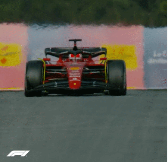 Leclerc’s F1-75 bouncing down the straight in Barcelona.