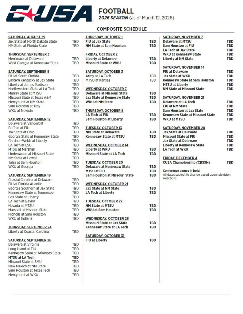 Last summer, Louisiana Tech announced it would be joining the Sun Belt Conference. At some point. Well, no later than the 2027 season. La Tech has filed a lawsuit against their current home Conference USA to try and leave the league. This week, Conference USA announced its schedule for 2026 and the Bulldogs are included.