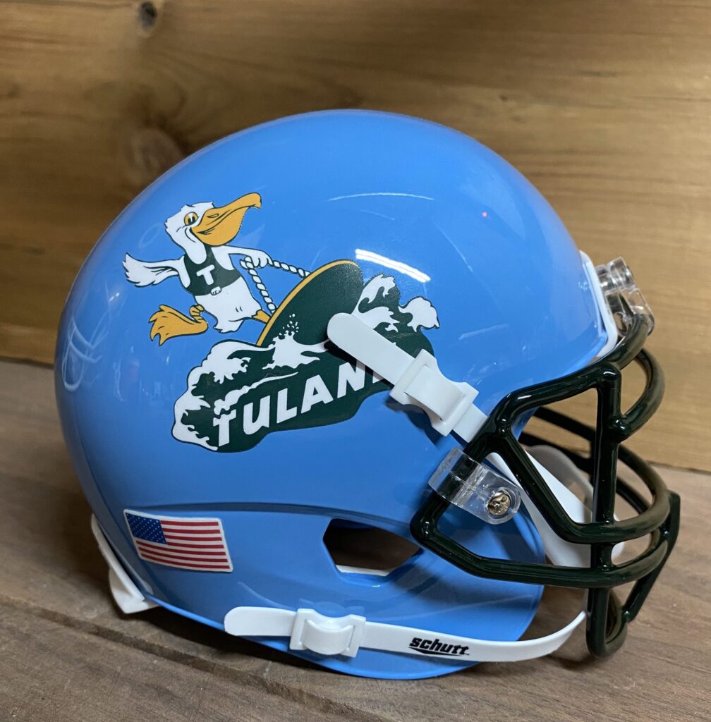 I am ashamed to admit that I missed this glorious lid from this past season. Tulane has been no stranger to top-notch helmets and they wore these in a loss to UCF in 2020 with their all-baby blue uniforms.