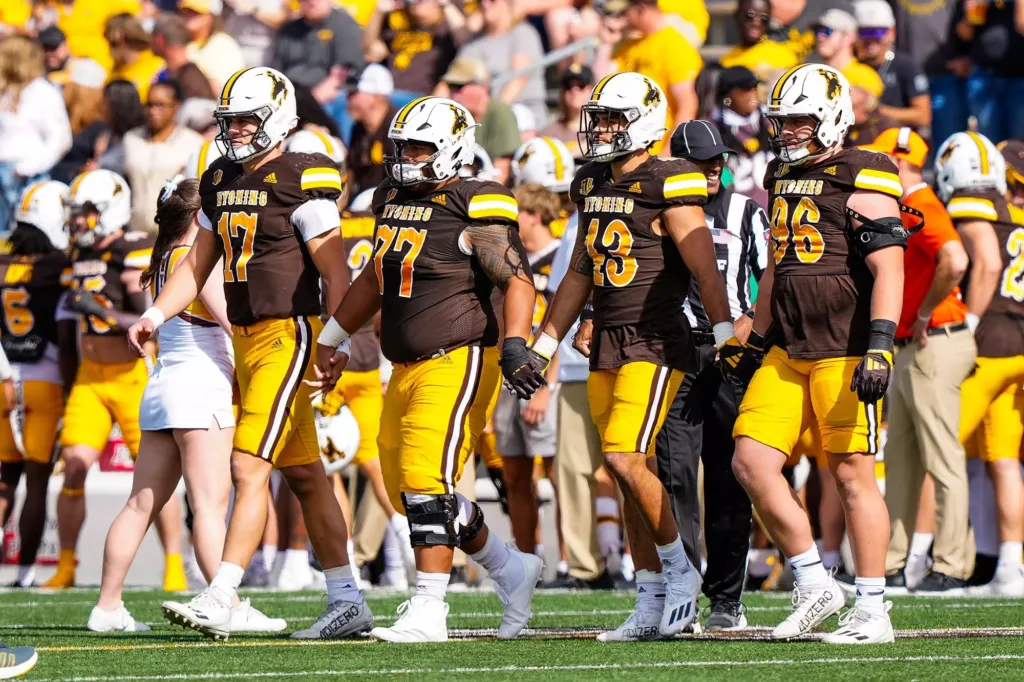 A much more traditional uniform came back, although for the real uniform nerds check out all 3 striping patterns on the pants, jersey, and helmet being different. I’d argue a stripe-less helmet (something Wyoming has used quite a lot throughout their history) might look better.