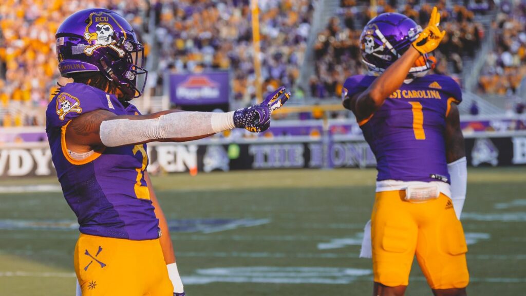 Since then, the vibes have been tremendous. Their best look is the home purple jersey, chrome purple helmet, and yellow pants. The 2024 uniforms featured no white trim outside of the logos. I’d probably add quite a bit of white (ECU uses a throwback uniform with a lot of white that looks amazing) to the above uniform but the overall design is really nice and at least makes them look far different than LSU, the country’s more famous purple and yellow team.