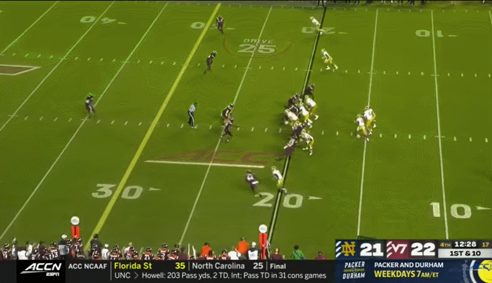 This is nothing special but it’s nice to see a true freshman complete a slant on 3rd down in a close game in the red zone. It was open and he delivered a nice accurate ball that nearly goes for the touchdown.