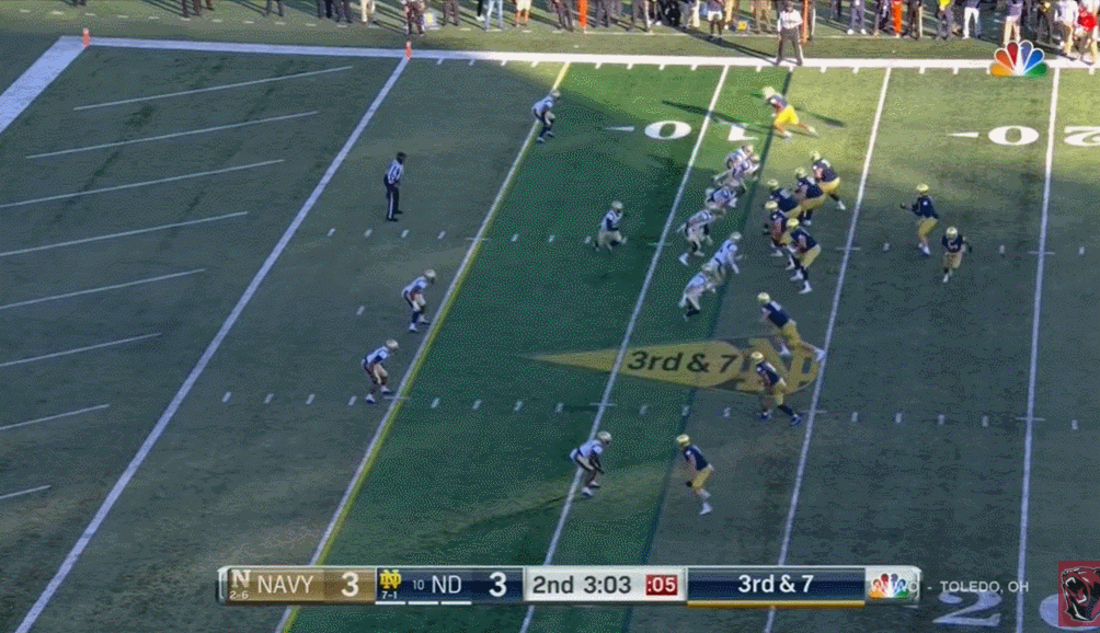 WRsTEs running routes (I fixed that after remembering that ND won’t have any WRs in the coming years). In addition, him being a running threat also seems to help the RBs.As long as he keeps showing improvement, I’d like to see him get a chance to run the show.